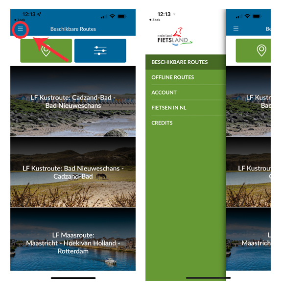 Met de LF-app tover je in een paar tellen jouw smartphone om tot navigatiesysteem. Je hoeft niet handig te zijn om de app te kunnen gebruiken, hij blinkt namelijk uit in gebruiksvriendelijkheid. Bij het openen van de app zie je een overzicht van de beschikbare routes, in de toekomst breiden we het aanbod verder uit. Zie je de routes niet dan kun je via het menu (drie horizontale streepjes onder elkaar) kiezen voor “beschikbare routes”.