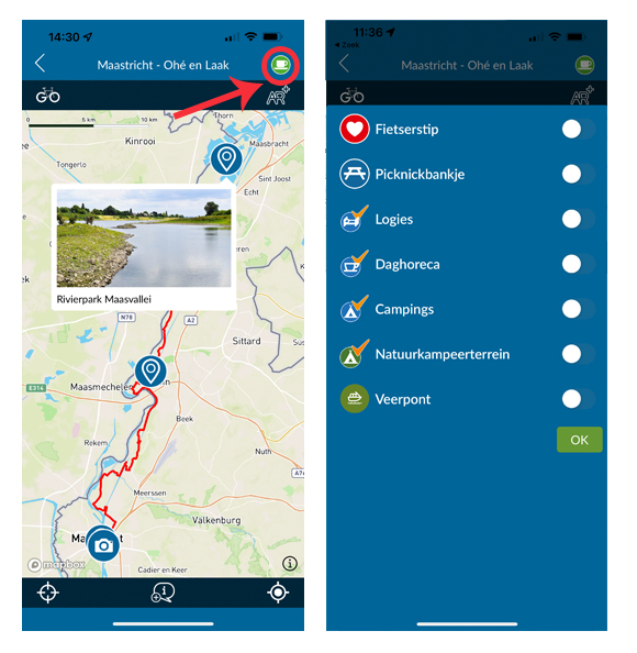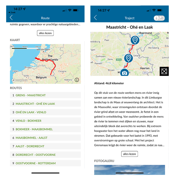 De routes zijn voor je gemak opgedeeld in verschillende dagtrajecten. Ook toont de app de routetrack, de kaart, het hoogteprofiel, diverse bezienswaardigheden en voorzieningen als Fietsers Welkom! adressen, Natuurkampeerterreinen en veerpontjes. In de kaartfunctie zit een filter waarmee je voorzieningen kunt aan- en uitvinken. Handig om een overnachtingsadres langs de route te zoeken. De app is ook interactief. Je kunt een review plaatsen, wijzigingen en obstakels in de route doorgeven of een suggestie doen voor het toevoegen van een bijzondere plek langs de route. De app is gratis beschikbaar in de App Store en Google Play.